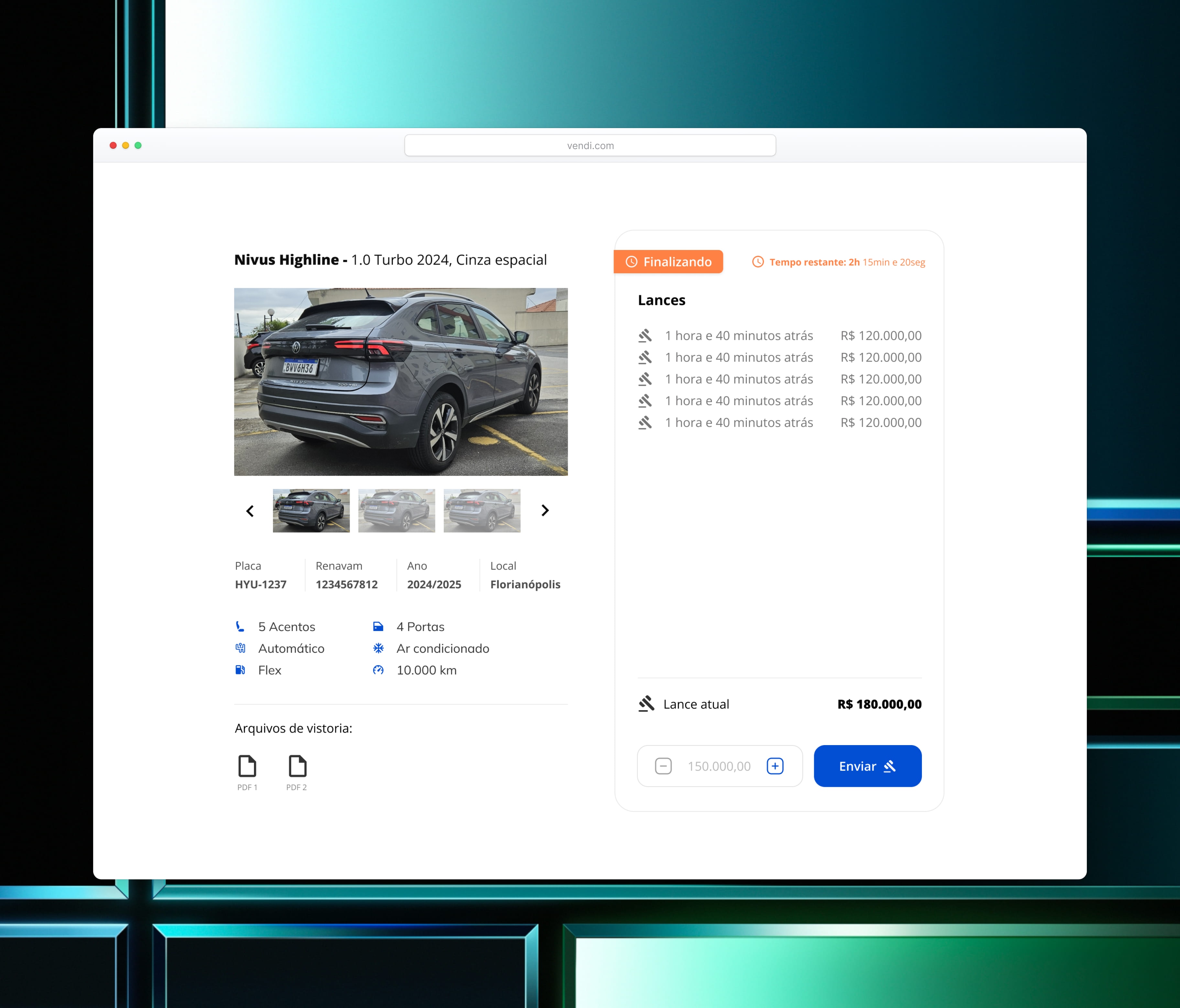 A Vendi nasce para mudar essa realidade, eliminando intermediários desnecessários e colocando o poder de negociação diretamente nas mãos dos usuários. Através de leilões exclusivos para garagistas, automação no processo de transferência e logística, e um ambiente 100% digital, a plataforma torna a venda e compra de veículos mais simples, segura e lucrativa para todos os envolvidos.